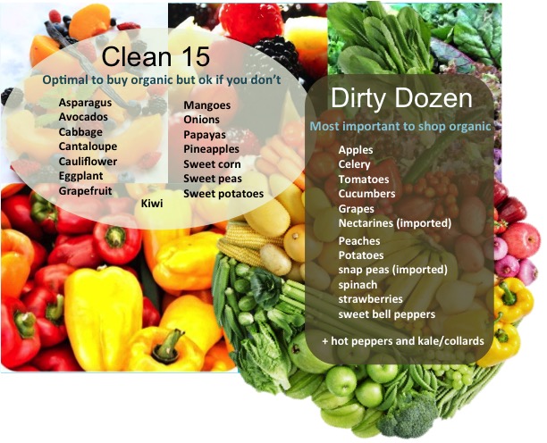Their conclusions were that consuming organic produce does matter and that it is beneficial to your health. So I have included a list indicating some fruits and veggies that should, as much as possible, be purchased organic and a list of produce that it is a little safer to buy non organic. These lists are based solely off of pesticide residues and not nutritional content. The ones that tend to have higher amounts of pesticide residues are considered the dirty dozen(buy organic), and those that have been measured to have lower amounts of pesticide residues are considered the clean 15 (you might get away with eating these non organic). Happy eating!!